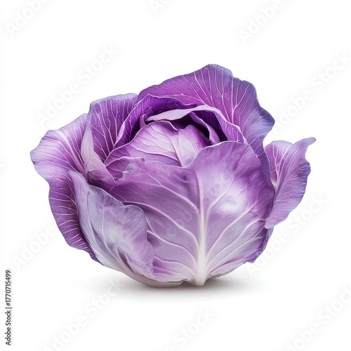 Fresh purple cabbage with intricate textures and vibrant leaf colors