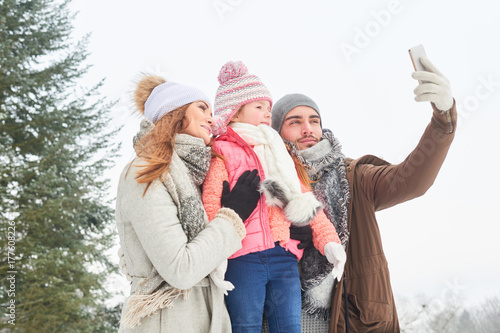 Familie macht Selfie im Winter Urlaub