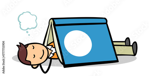 Cartoon Mann beim Schlafen unter Buch als Literatur Konzept