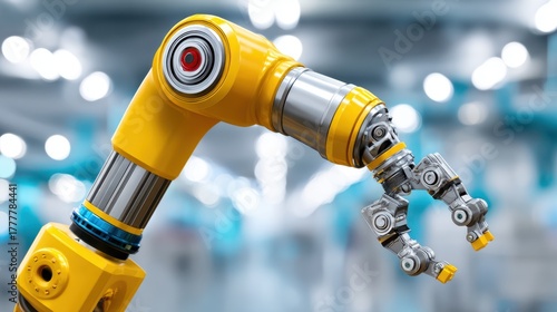 Industrial robotic arm, product photo in a factory setting, automated manufacturing equipment, modern machinery, precision engineering, advanced technology, robotics concept, innovation