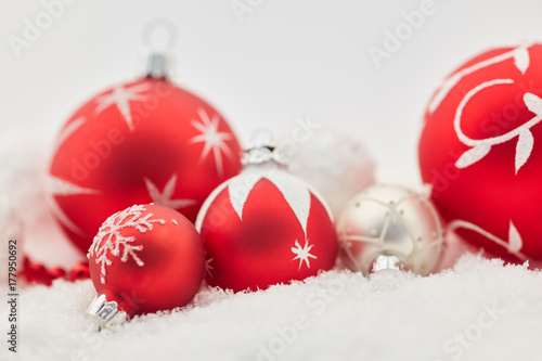 Rote Weihnachtskugel als Weihnachten Hintergrund