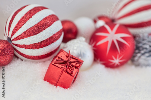 Weihnachten Panorama mit Geschenk und Christbaumkugel