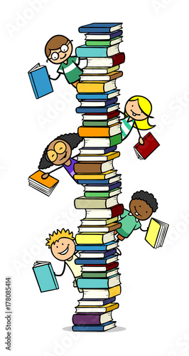Glückliche Schulkinder mit Schulranzen und Büchern