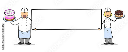 Fensterputzer und Gebäudereiniger halten leeres Schild