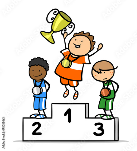 Sieger Kinder auf Siegertreppe bei Siegerehrung
