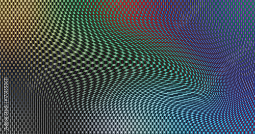 Vibrant gradient halftone pattern with rainbow colors transitioning diagonally
