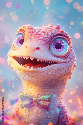 Whimsical portrait of a colorful dragon with luminescent eyes in fantasy realm