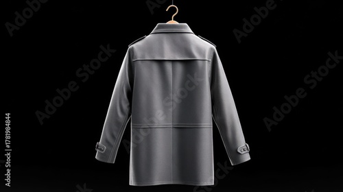 Grey trench coat template with back view design on black background
