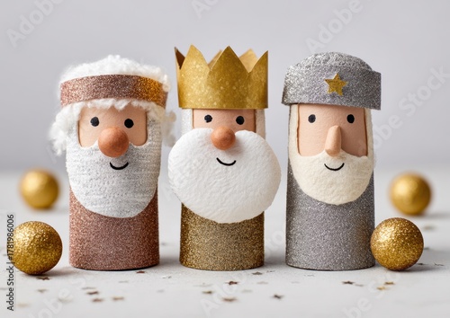 Three Kings Paper Roll Craft Christmas Nativity Scene Holiday Decoration Cute DIY Project Beige Background