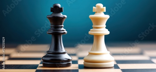 Chess Kings on Chessboard Black and White Pieces Strategy Game Competition Concept Rivalry Challenge Leadership