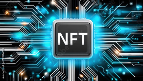 NFT Technology Concept Non Fungible Token On Circuit Board Digital Art And Crypto Assets Blockchain Technology