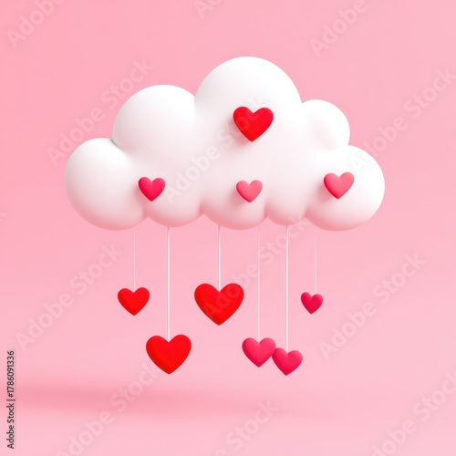 White Cloud With Red Hearts On Pink Background For Valentine's Day And Romantic Celebrations Love Concept 3D Rendering