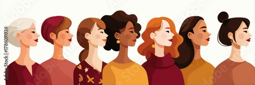Diverse Group Of Women Illustration On White Background Showing Different Ethnicities Hairstyles And Ages For Beauty And Fashion Concepts