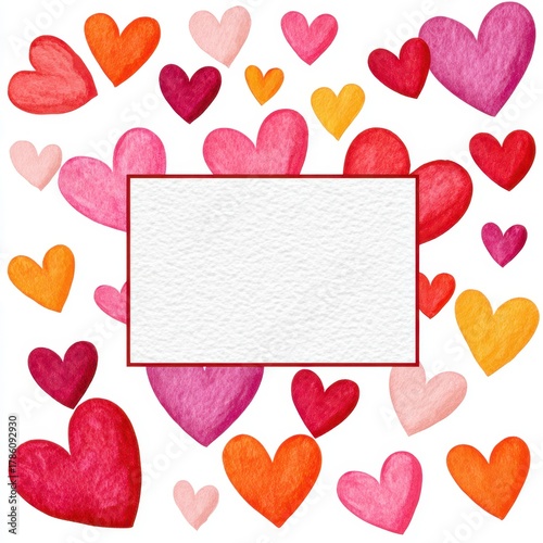 Watercolor Hearts Frame On White Background For Valentine's Day Love Romance Weddings Anniversaries And Other Special Occasions
