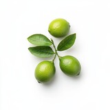 Fresh limes with green leaves on a white background