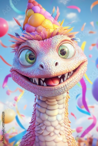 Colorful and joyful creature celebrating in a cheerful festive atmosphere