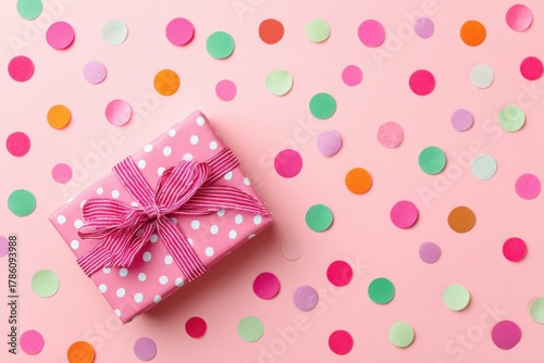 Pink Gift Box With Ribbon And Confetti On Pink Background For Birthday Celebration Holiday Christmas And Special Occasions