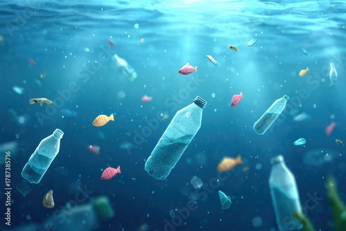 Plastic Bottles Floating Underwater With Fish Illustrating Ocean Pollution And Environmental Damage To Marine