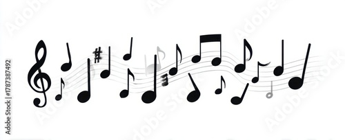 Musical Notes On Staff Lines Isolated On White Background For Music Education And Creative Projects Sheet Music Elements For Design And Composition