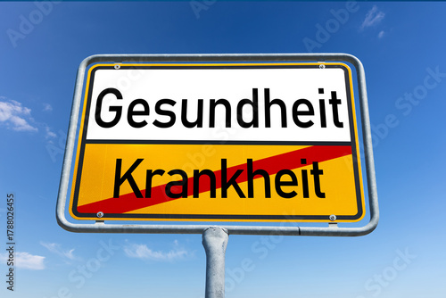 Gesundheit statt Krankheit – Symbol für Heilung und Wohlbefinden auf Ortsschild