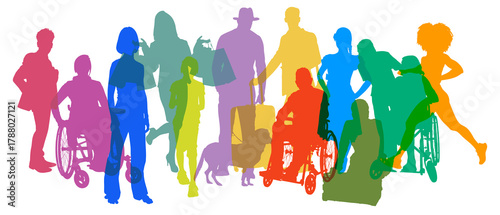 Bunte Silhouetten vieler Erwachsener in verschiedenen Posen