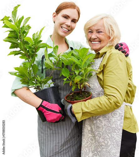 Junge Floristin und ältere Gärtnerin als Gärtnerei Team