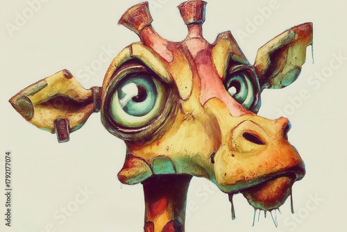 Funny stylized giraffe illustration with exaggerated features and large expressive eyes