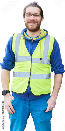 Lächelnder Bauarbeiter Lehrling auf einer Baustelle