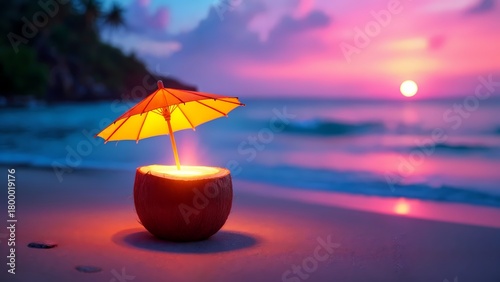 Panoramic view of sunrise over tranquil ocean and distant mountains