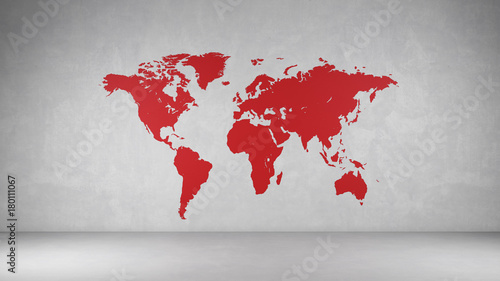 Rote Weltkarte an Wand aus Beton
