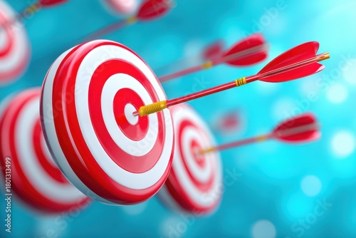 Red Target With Arrows On Blue Background For Accuracy And Precision In Business And Marketing Concepts And Achieving Goals And Objectives
