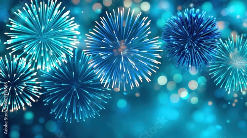 Festive Blue Fireworks Display On Blurred Bokeh Background For Celebrations And Holiday Events Perfect For New Year's Eve And Fourth Of July