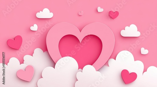 Pink Hearts And White Clouds On Pink Background For Valentine's Day Love Romance Wedding Anniversary And Special Occasions