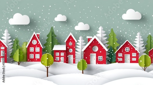 Winter Holiday Scene With Houses Trees Snow And Christmas Ornaments In Paper Cut Design For Festive Season And Celebrations