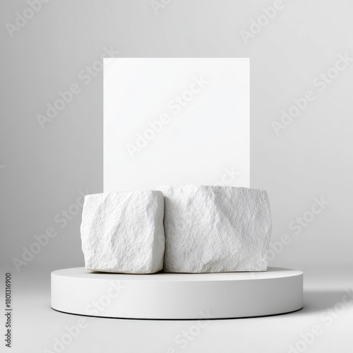Minimalist White Stone Pedestal Display On White Background For Product Showcase And Presentation Modern Mockup Platform Studio Shot