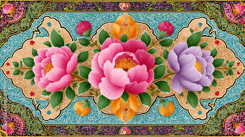 Bright and colorful seamless Japanese floral pattern with vibrant blooms