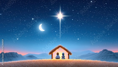 Nativity Scene Under Starry Night Sky With Moon And Manger Christmas Holiday Background For Religious Celebration