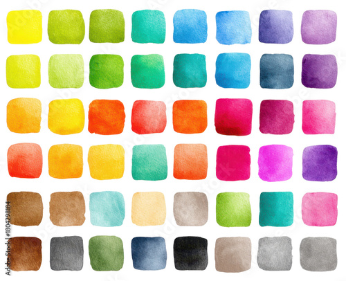 PNG Watercolor Squares Palette On White Background With Various Colors For Graphic Design And Artistic Projects Isolated Studio Shot