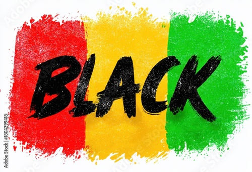 Black Text On Red Yellow Green Brush Strokes Isolated On White Background For Juneteenth And Cultural Celebration