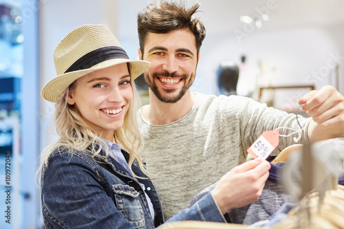 Junges Paar im Jeans Mode Shop beim Einkaufen