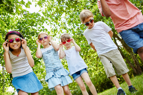 Multikulturelle Kinder mit Sonnenbrillen im Sommer