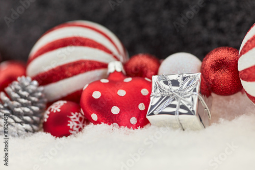 Weihnachten Panorama mit Geschenk und Christbaumkugel