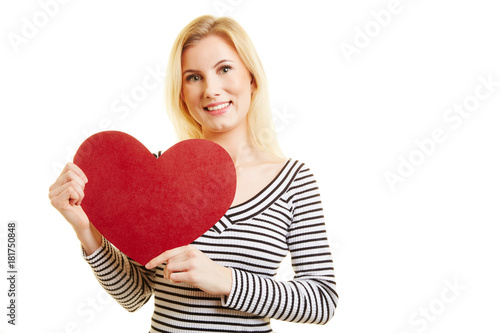 Frau hält rotes Herz zum Valentinstag oder Muttertag