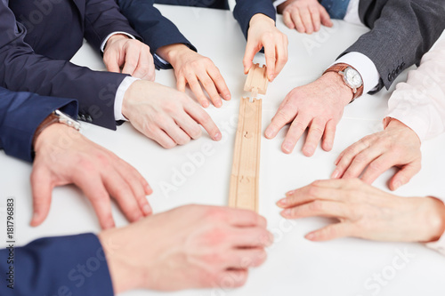 Panorama aus Silhouetten von Geschäftsleuten vor bunten Business Portraits