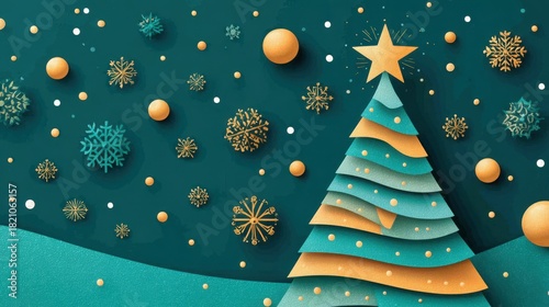 Christmas Tree With Star And Snowflakes On Teal Background For Holiday Season And Festive Celebrations Winter Holiday Season Christmas