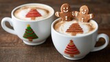 Festive Christmas Cappuccino With Gingerbread Men And Tree Art On Wooden Table For Holiday Season And Winter Celebrations