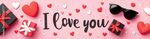 Romantic Pink Background With Gift Boxes Hearts Sunglasses And I Love You Message For Valentine's Day And Anniversary Celebrations
