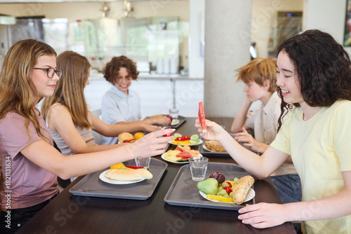 Students enjoying lunch together in a bright and inviting school cafeteria
