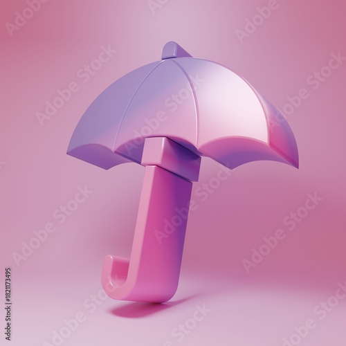 Purple-pink Umbrella icon isolated on pink background. Waterproof icon. Protection, safety, security concept. Water resistant symbol. Minimalism concept. 3D render illustration #1821173495