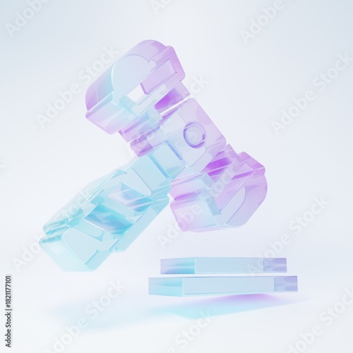 Frosted glass Judge gavel icon isolated on white background. Gavel for adjudication of sentences and bills, court, justice. Auction hammer. Minimalism concept. 3D render illustration #1821177101
